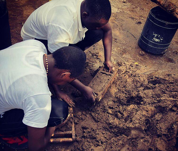 The JW Seagon team made over 35 bricks, which can now be used to lay foundations for the stove construction. Making bricks involves mixing mud, cow dung and grass to ensure that they are durable.