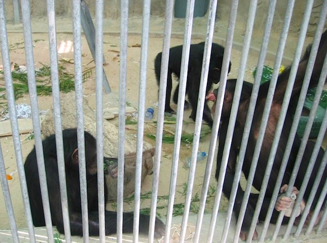 Three chimps at Doha Zoo before it closed in 2012
