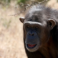 Tess was found on sale in a market place in Kenya looking miserable and malnourished. She was taken and kept as a pet with a family in Kisumu. Tess came to the Sweetwaters Chimpanzee Sanctuary in 1995 and is now a mother to a baby named Joy who was born in 2004. Tess is a high-ranking female who loves eating and socializing. She protects the younger chimpanzees in the group and is respected by everyone.