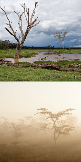 Elephants are largely responsible for the destruction and degradation of yellow fever woodlands in Ol Pejeta. Elephants snap, strip and push over mature trees looking for food, and in large numbers can cause serious damage. Exposing the woody tissue of the tree by stripping the bark leave the tree susceptible to attack by boring beetles and other insects, which can eventually lead to the death of the yellow fever.